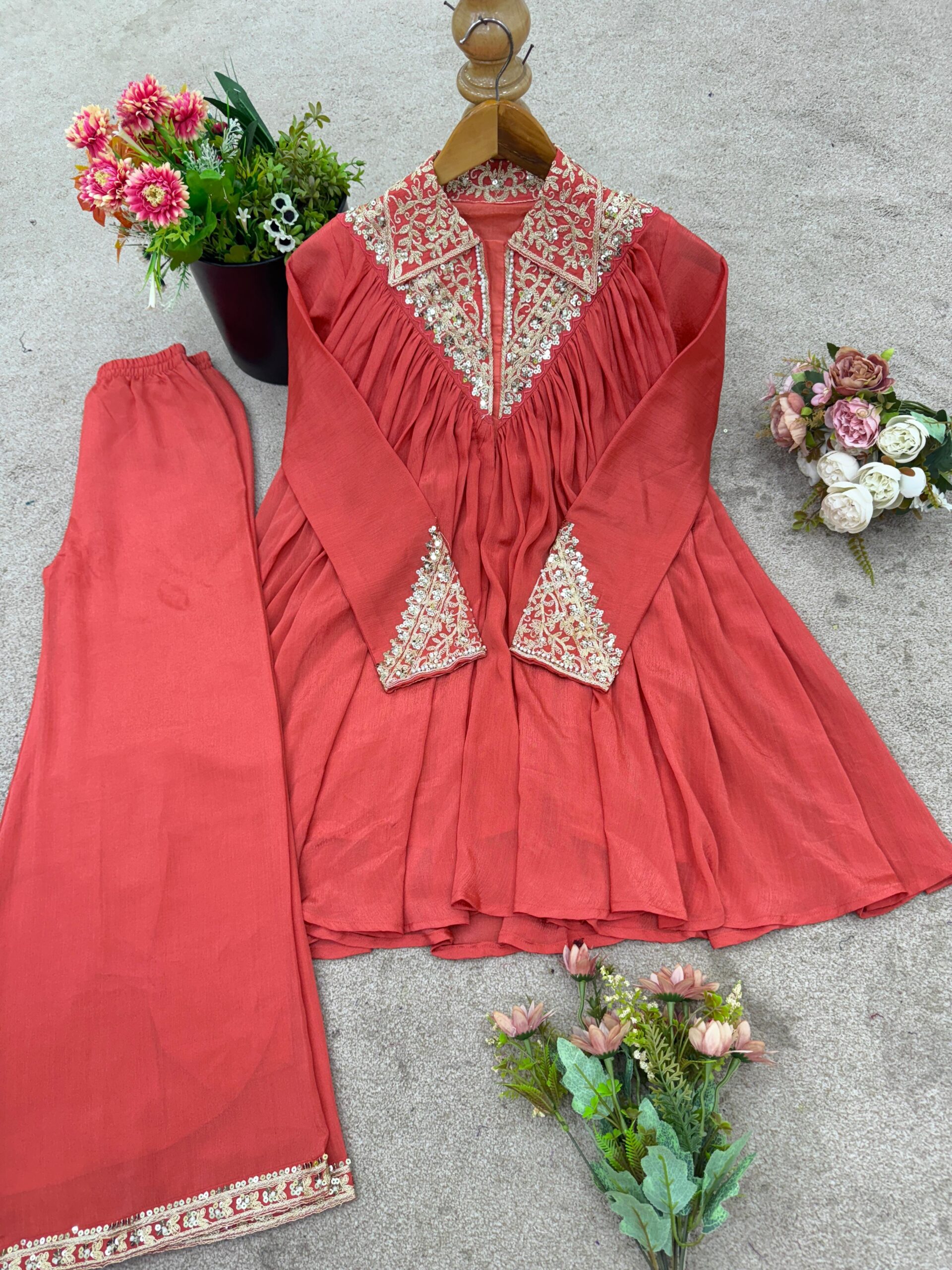 Heavy Chinon With Embroidery Sequence WorkTop Length:31-32 inches