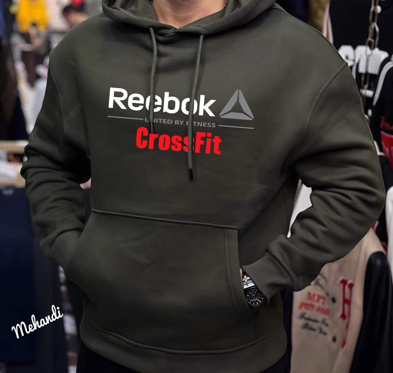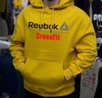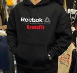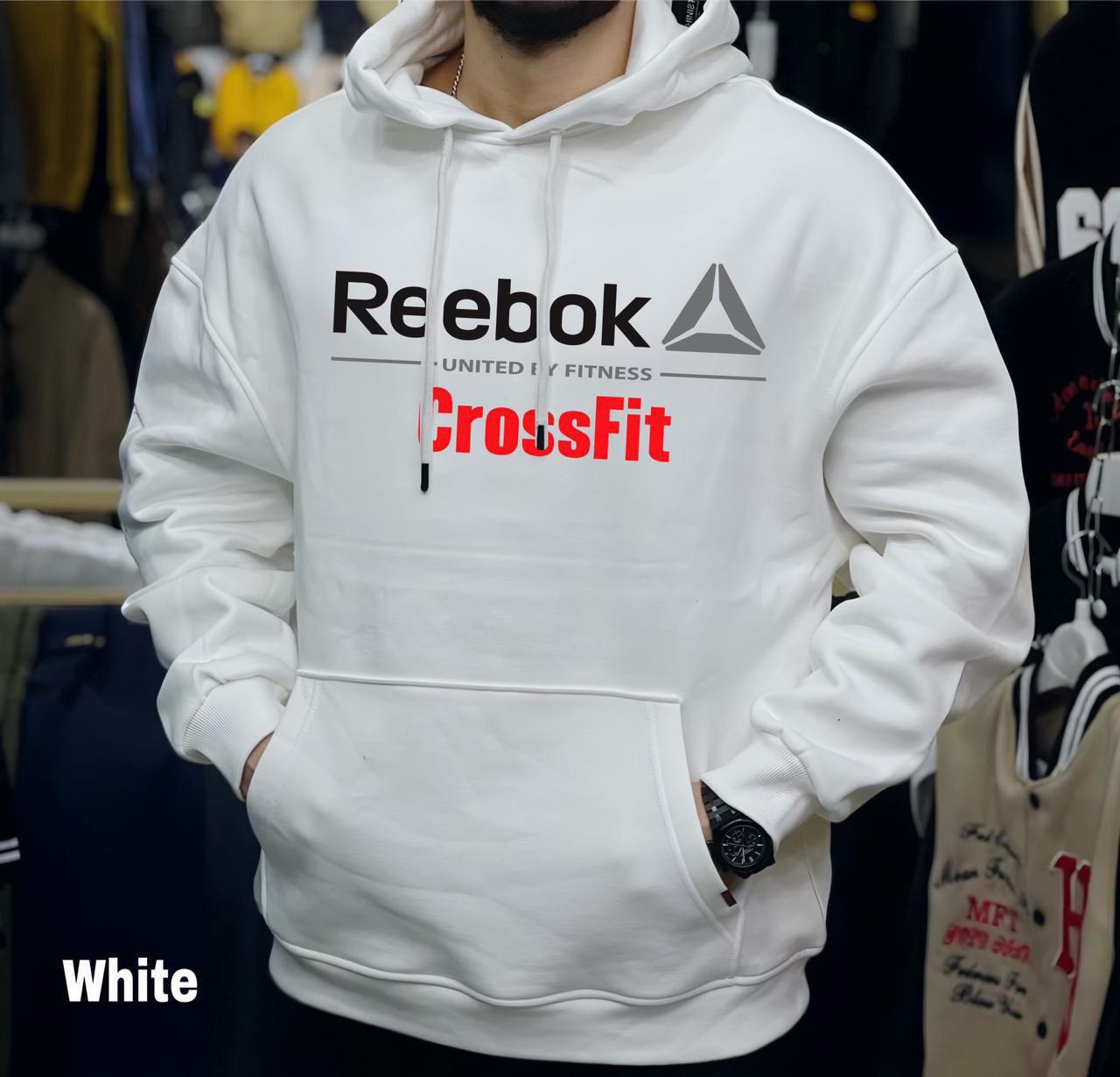 It features the Reebok logo and “UNITED BY FITNESS” text in white and grey, along with “CrossFit” written in bold red on the front.